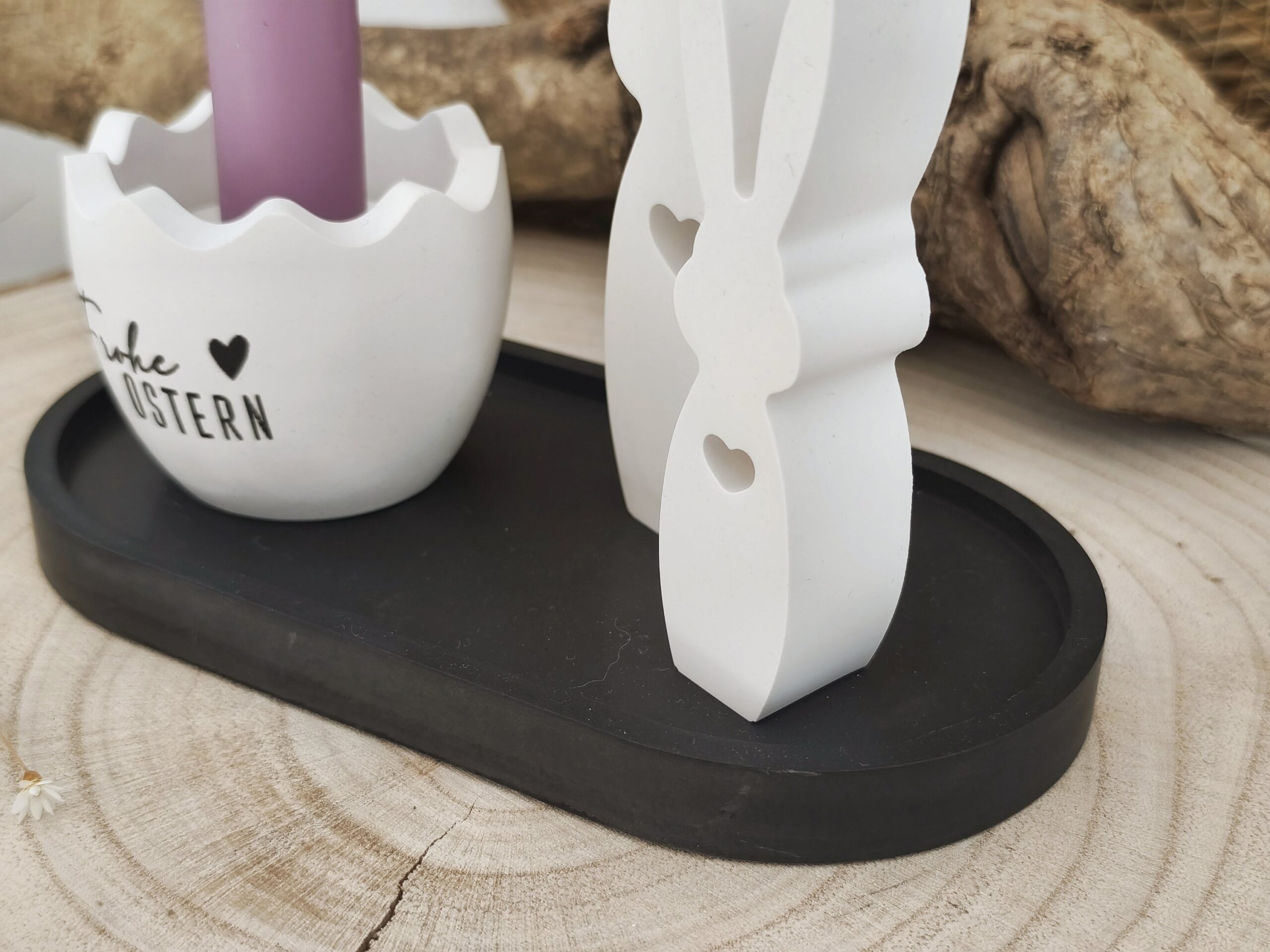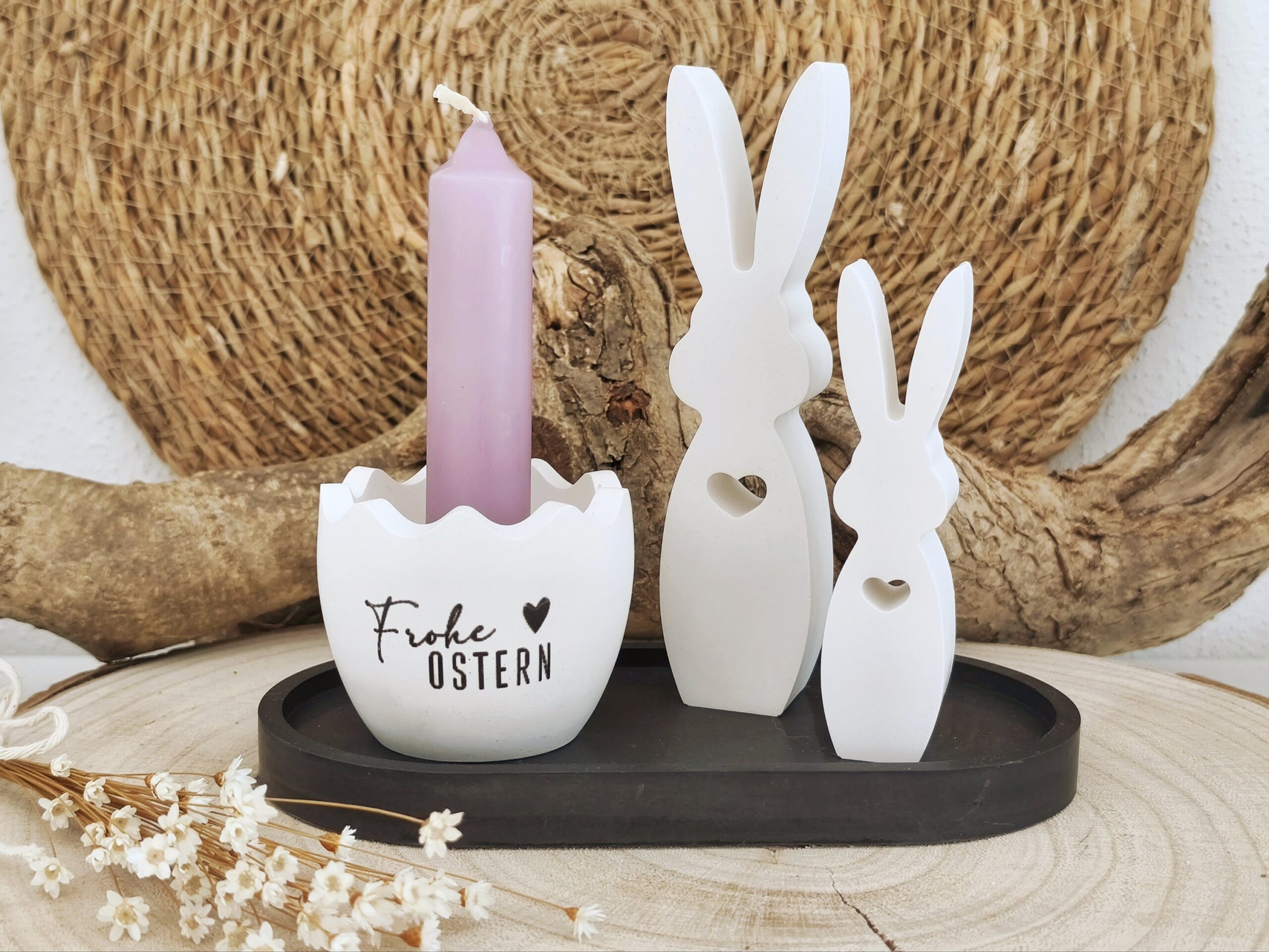 ❣️ Das Osterdeko Kerzenhalter Set mit Hasen ist eine liebevoll gestaltete Dekoration für Ostern und Frühling. Es enthält Kerzenhalter, Tablett und zwei süße Hasen aus Raysin. Durch das schlichte, elegante Design lässt sich das Set hervorragend mit anderen Dekoelementen kombinieren und bringt sofort eine warme, fröhliche Stimmung in dein Zuhause. Perfekt für Esstische, Fensterbänke oder Sideboards.