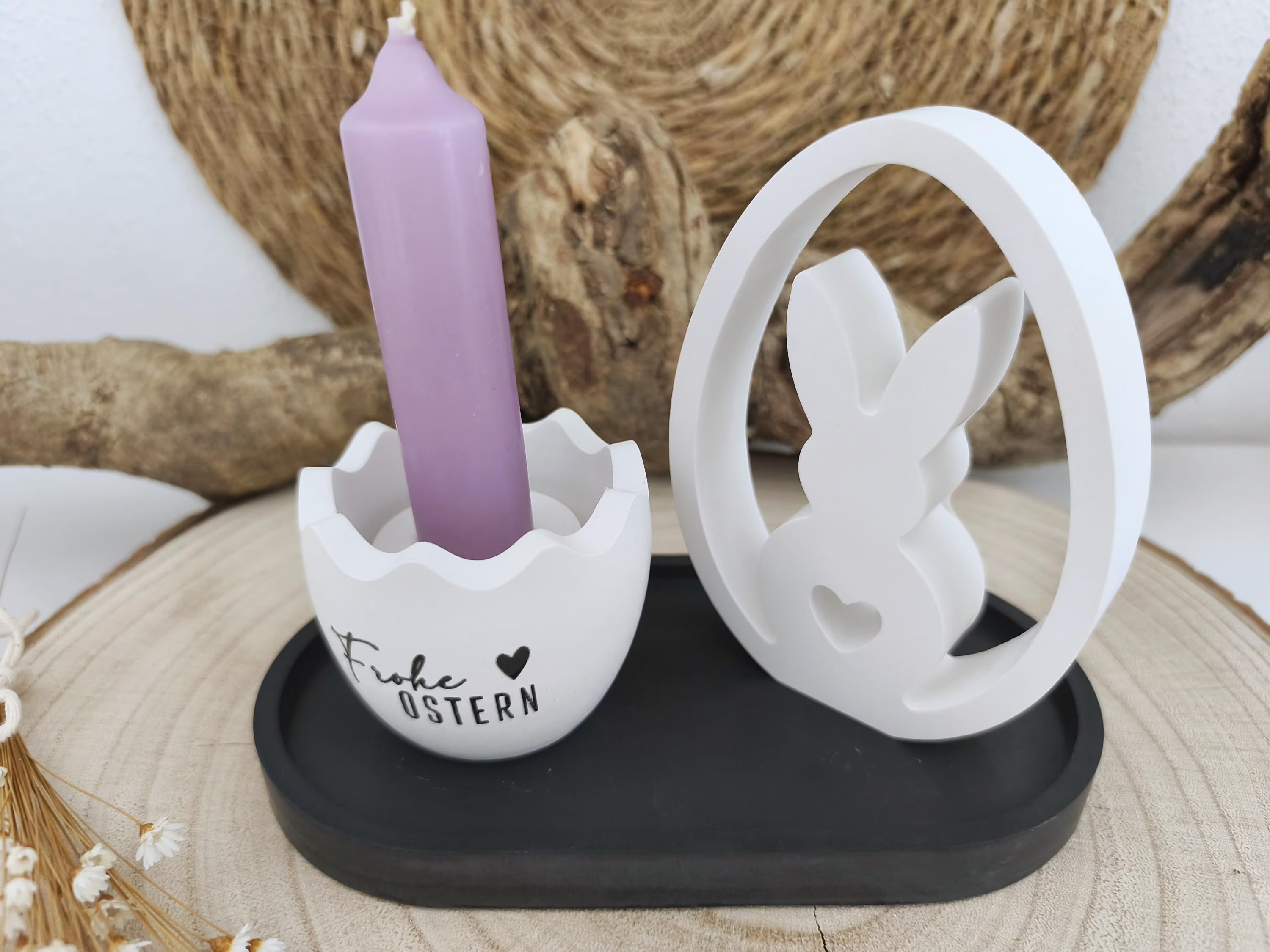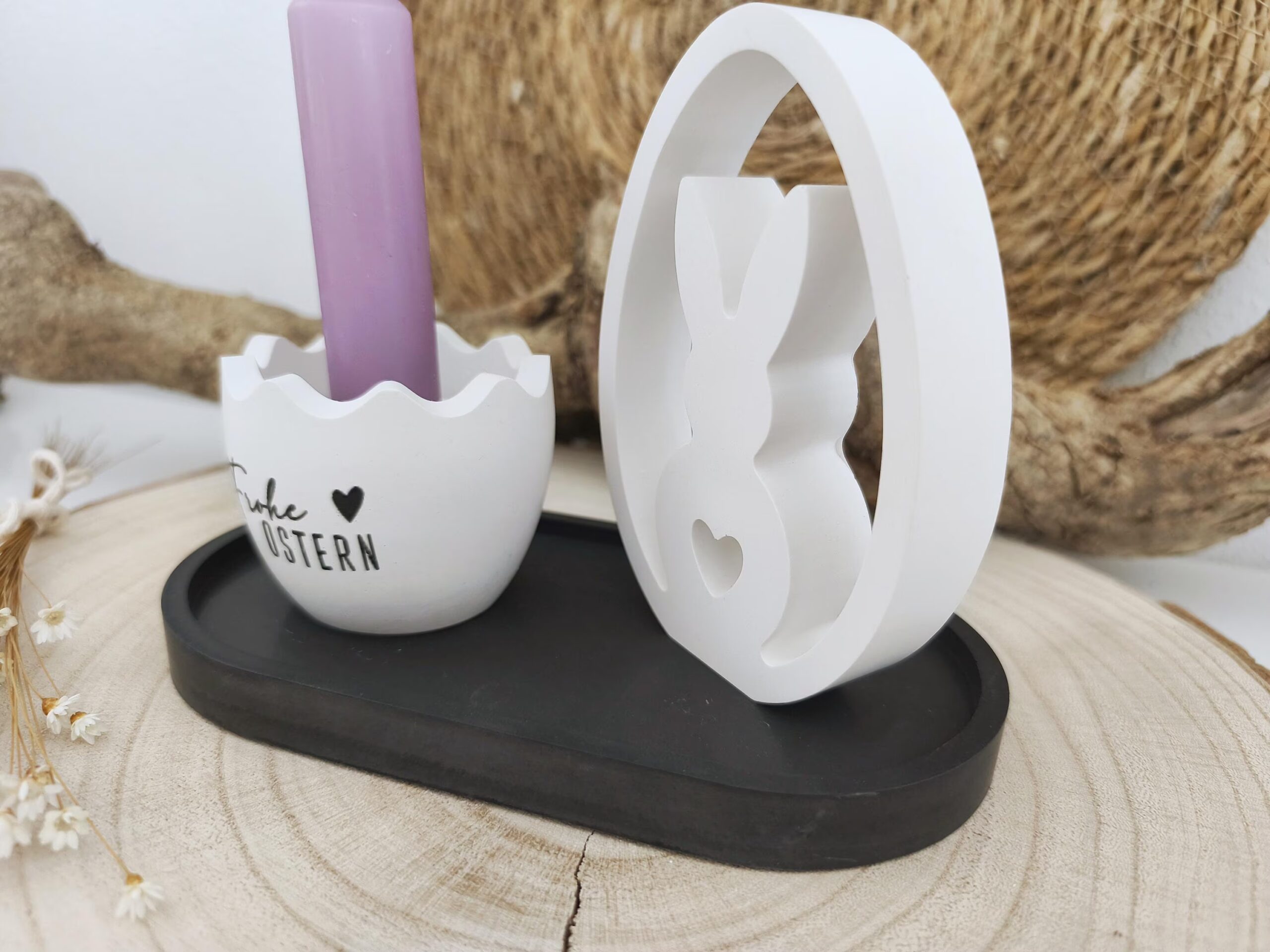 ❣️ Das Osterdeko Kerzenhalter Set handgemacht ist ein wunderschönes Highlight für deine Oster- und Frühlingsdekoration. Es umfasst ein Tablett, einen Kerzenhalter mit Kerze und einen süßen Hase im Ei aus Raysin. Dank des schlichten, zeitlosen Designs lässt sich das Set optimal mit weiteren Dekorationen kombinieren und sorgt sofort für eine warme, einladende Atmosphäre.