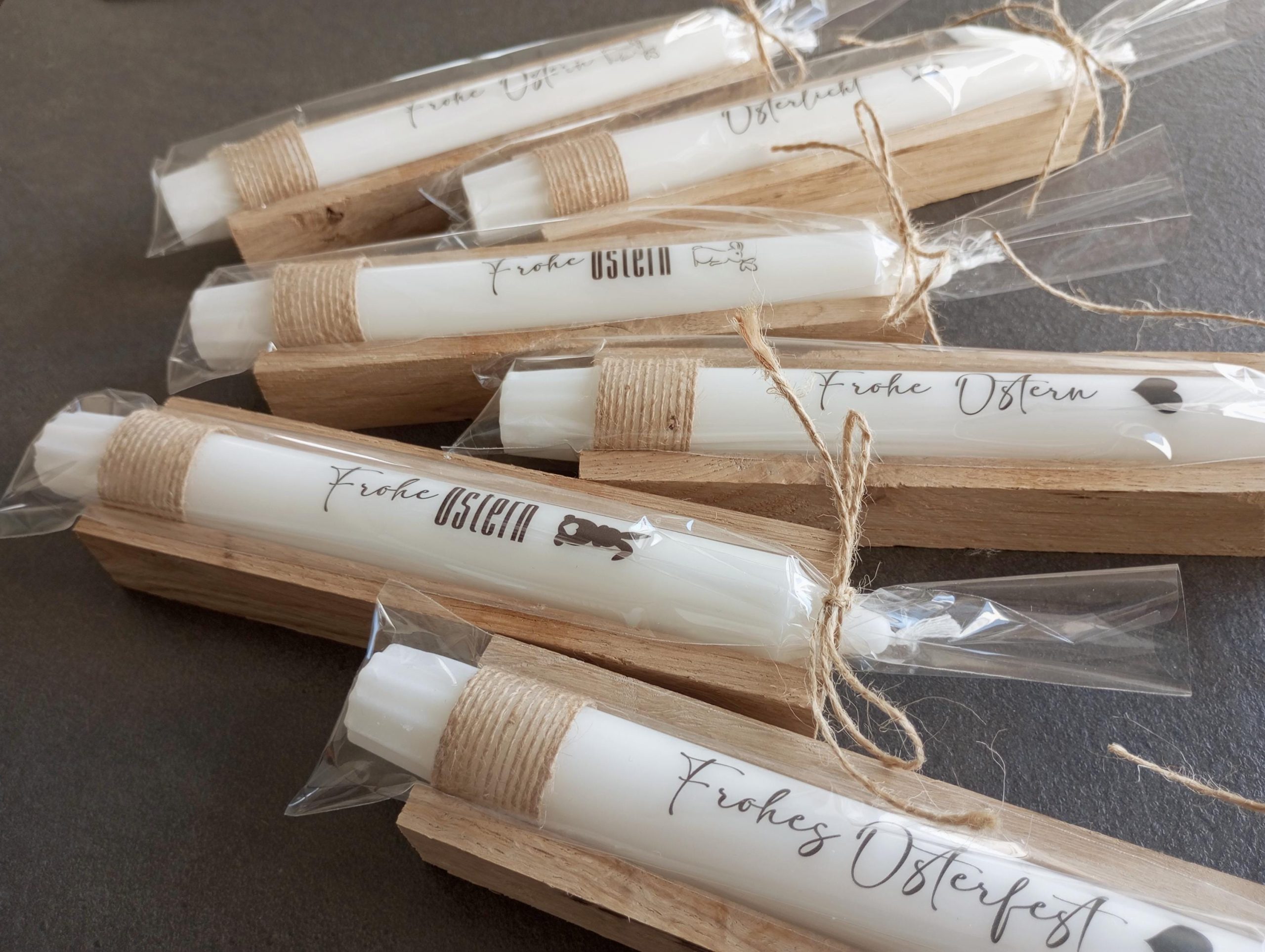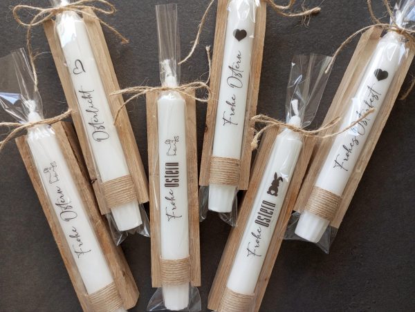 ❣️ Du kannst die Stabkerze als Geschenk für Ostern, Geburtstage oder Einweihungen nutzen, und sie eignet sich außerdem als kleine Aufmerksamkeit zwischendurch. Kombiniere sie mit Blumen, Teelichtern oder Holzfiguren, damit sie ihre volle Wirkung entfaltet. Wir empfehlen, sie auf dem Holzklötzchen zu platzieren, damit sie stilvoll präsentiert wird. Darüber hinaus sorgt der personalisierte Schriftzug dafür, dass jede Kerze ein individuelles Highlight wird.